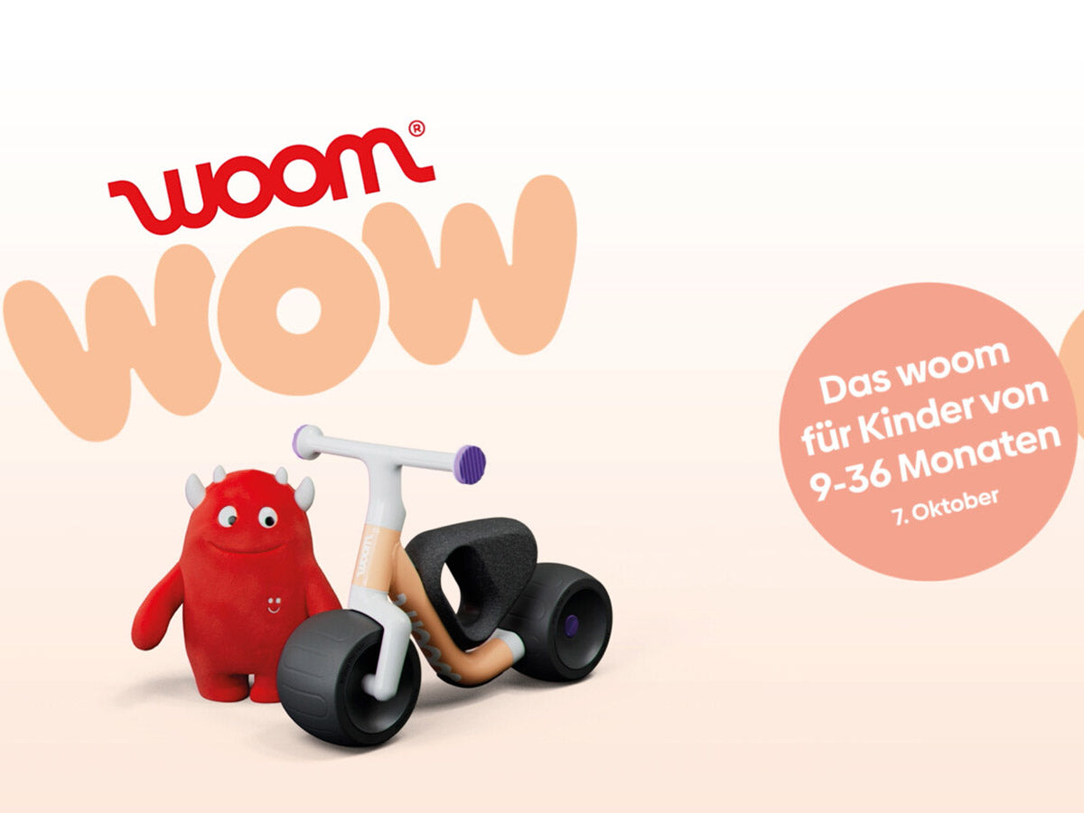 Auf einem Woom WOW können Kleinkinder bereits ab 9 Monaten spielerisch lernen, wie es sich anfühlt, 2 Räder unter dem Sattel zu haben. Das Woom WOW erleichtert den Start auf innovative Weise.
