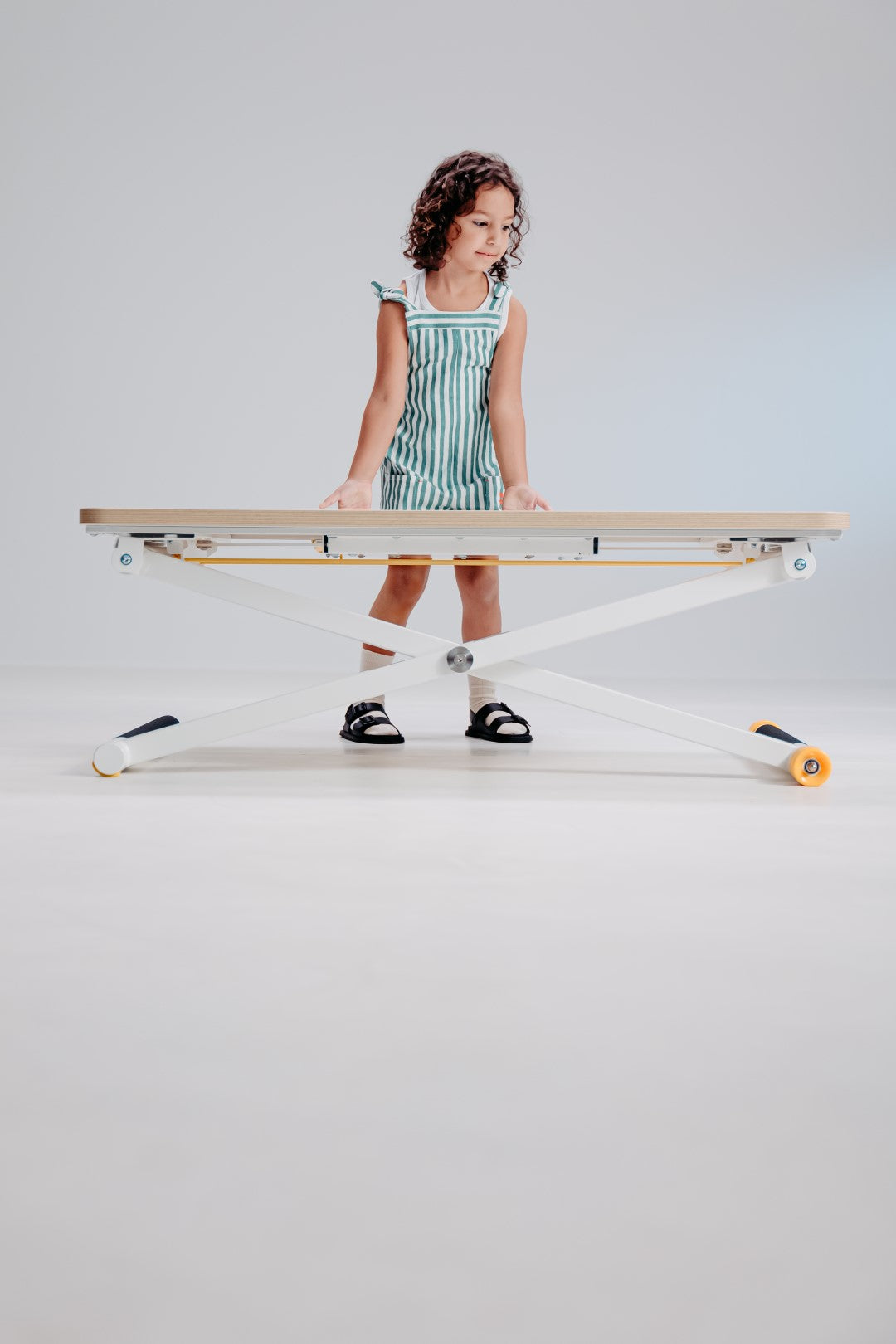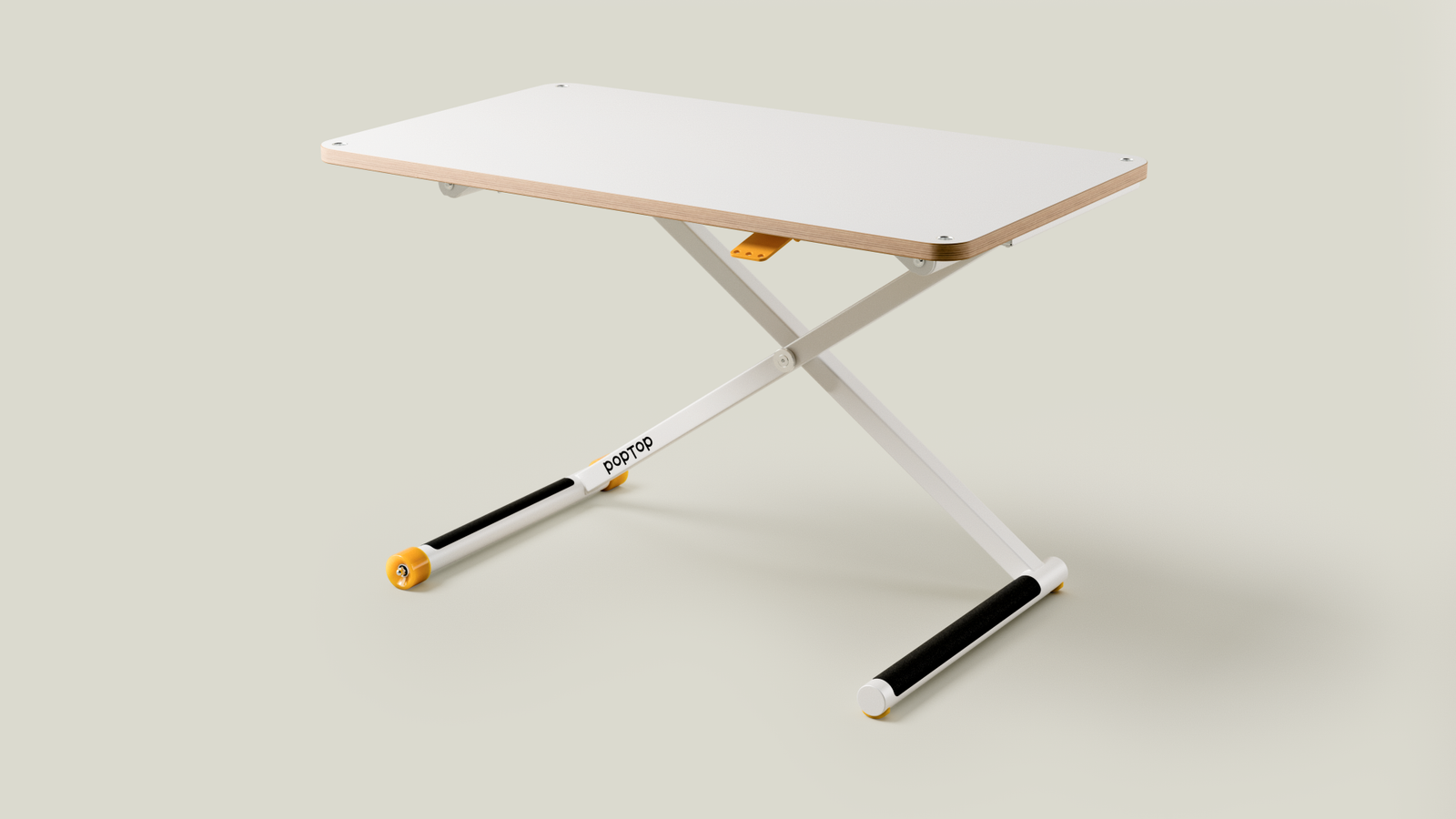 Dieser Tisch ist das Kernprodukt von Poptop, in der meistverkauften Farbe weiss. Obwohl noch ganz neu und innovativ schon fast ein Klassiker.