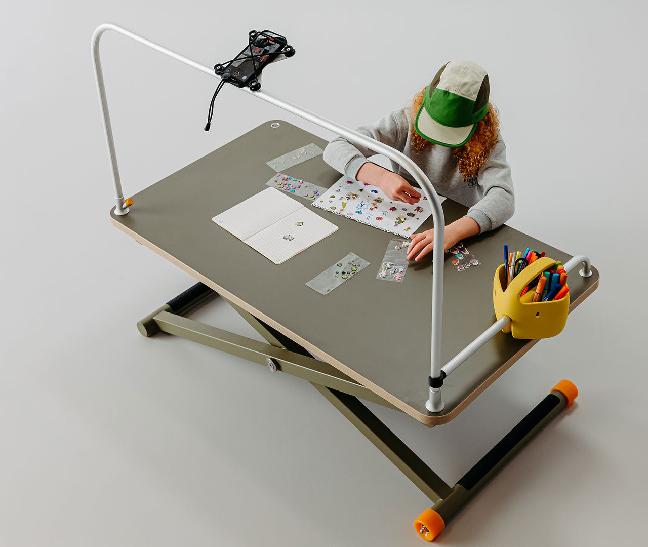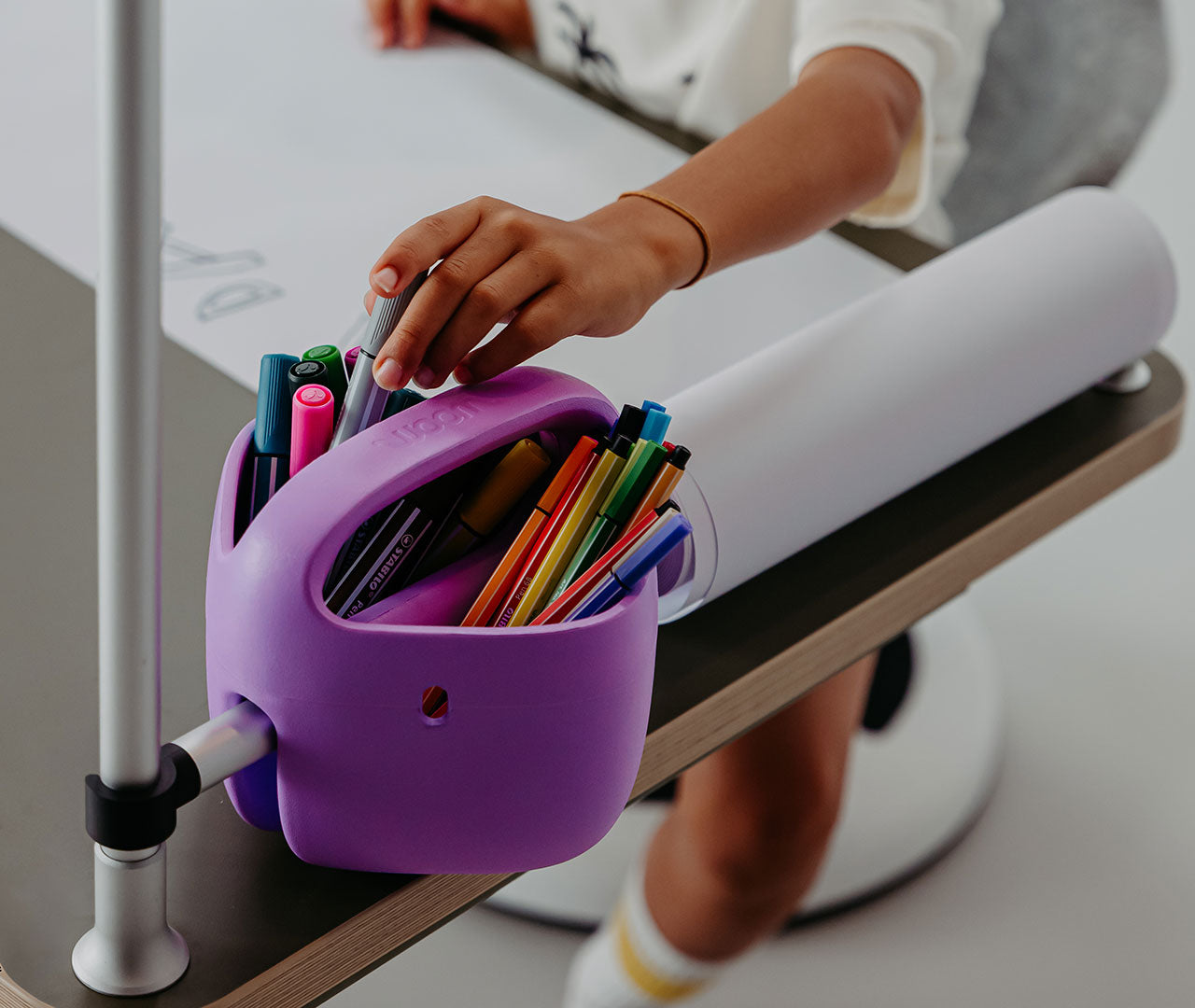 Die popsnap Stange ermöglicht es Deinem Kind, eine Papierrolle und einen Stifthalter spielend leicht in den Schreibtisch zu integrieren.